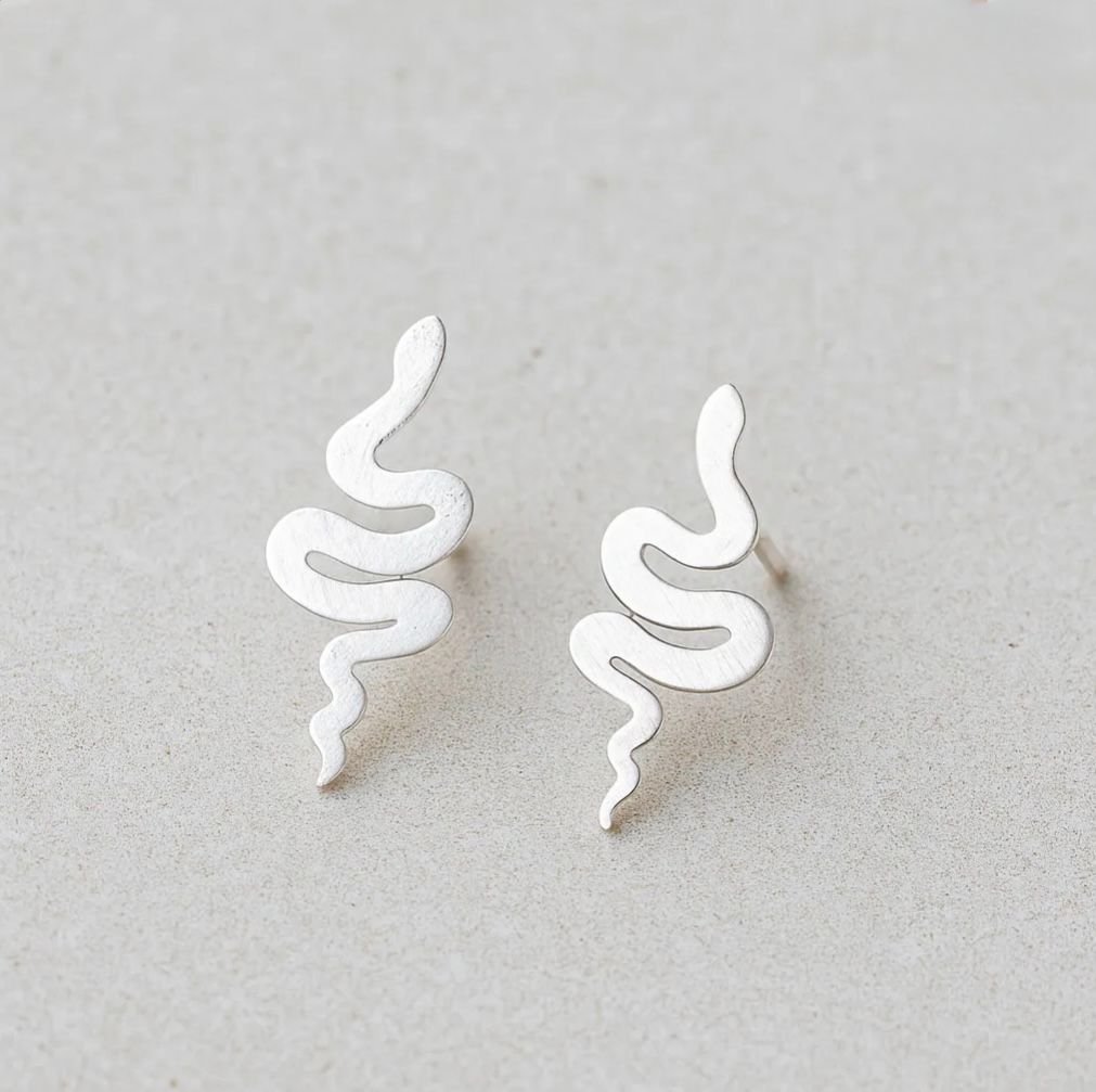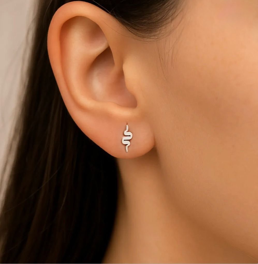 Para quem não tem medo de ousar. Este brinco simula uma cobra rastejando pela orelha (estilo ear cuff/climber), com um design de chapinha polida que reflete a luz e cria um visual poderoso e cheio de atitude.